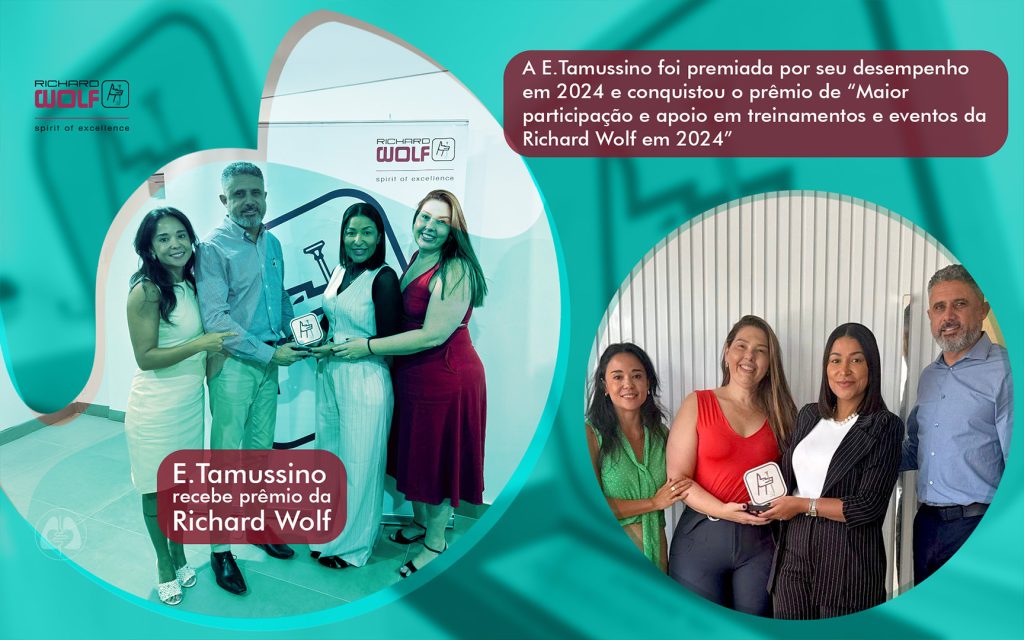 A E.Tamussino também foi reconhecida pela Richard Wolf pela maior participação e apoio em treinamentos e eventos ao longo de 2024. Este prêmio destaca nosso investimento na marca e nosso compromisso em oferecer aos clientes o que há de melhor no mercado. Acreditamos que a capacitação e o treinamento são essenciais para manter a excelência em nossos serviços e produtos.