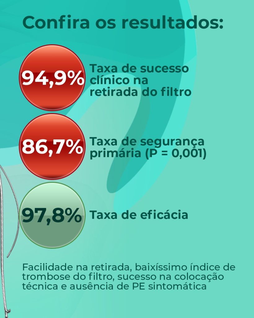 Este resultado destaca a segurança e a eficácia dos filtros de VCI da Cook na prevenção de embolia pulmonar, mantendo baixo risco de complicações.