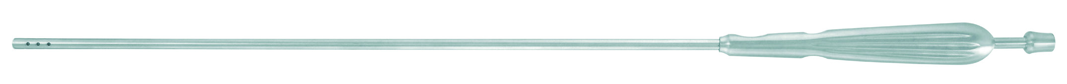 Cânula para aspiração de secreção ou líquidos por pressão negativa. A haste possui diâmetro entre Ø5-10mm, sistema de sucção fixa ou variável esem ponta. Apresenta comprimento total de 455mm. Confeccionada em aço inoxidável. Autoclavável.