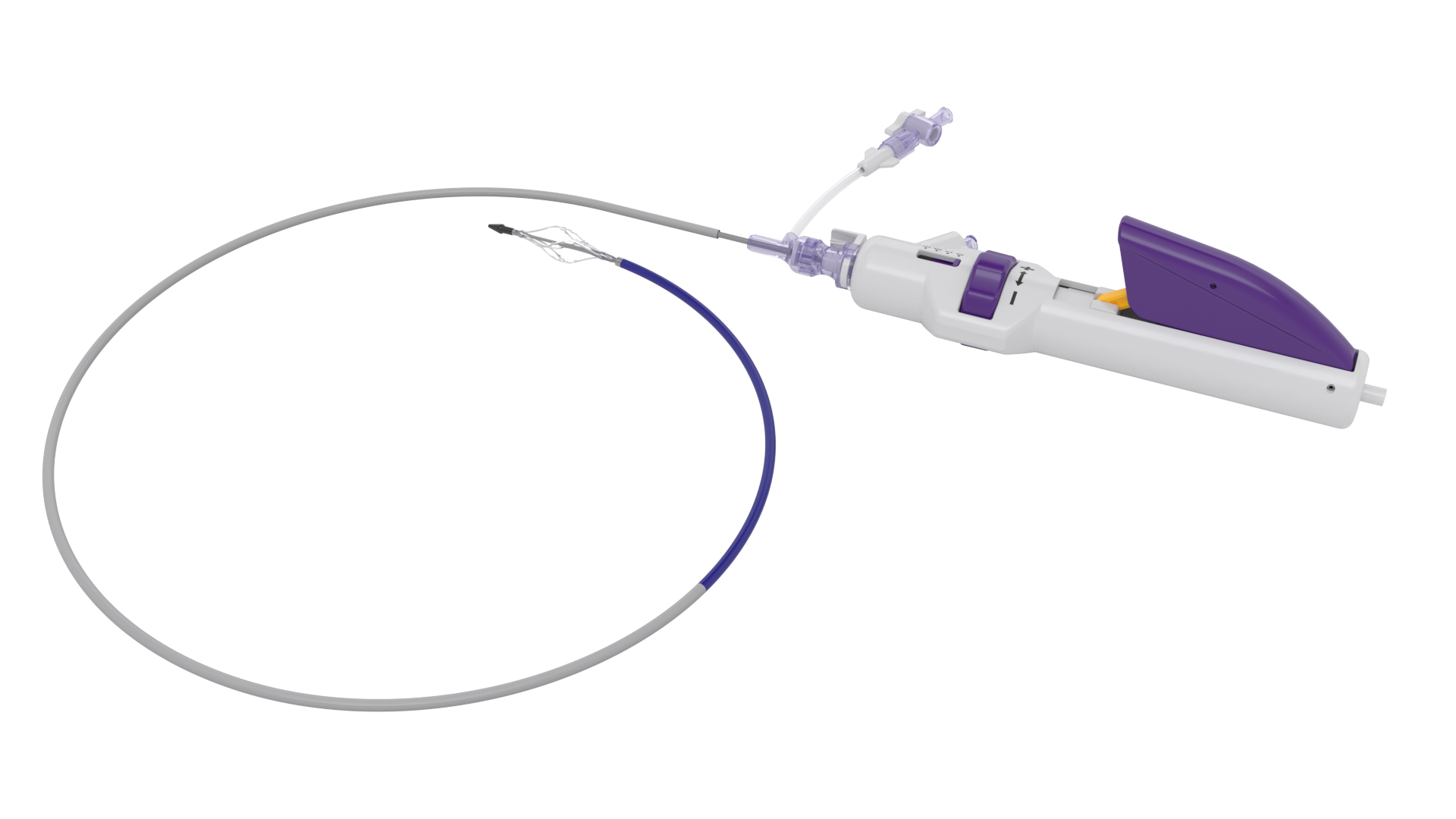 Dispositivo desenvolvido para tratar oclusões venosas desafiadoras em pacientes que sofrem de complicações de longo prazo de trombose venosa profunda (TVP). A manopla ergonômica apresenta um boão giratório para controle do diâmetro de abertura do elemento de contato e rotação 360° com transferência de torque 1:1. Possui alça de compressão com controle dinâmico da expansão e compressão do elemento de contato.
