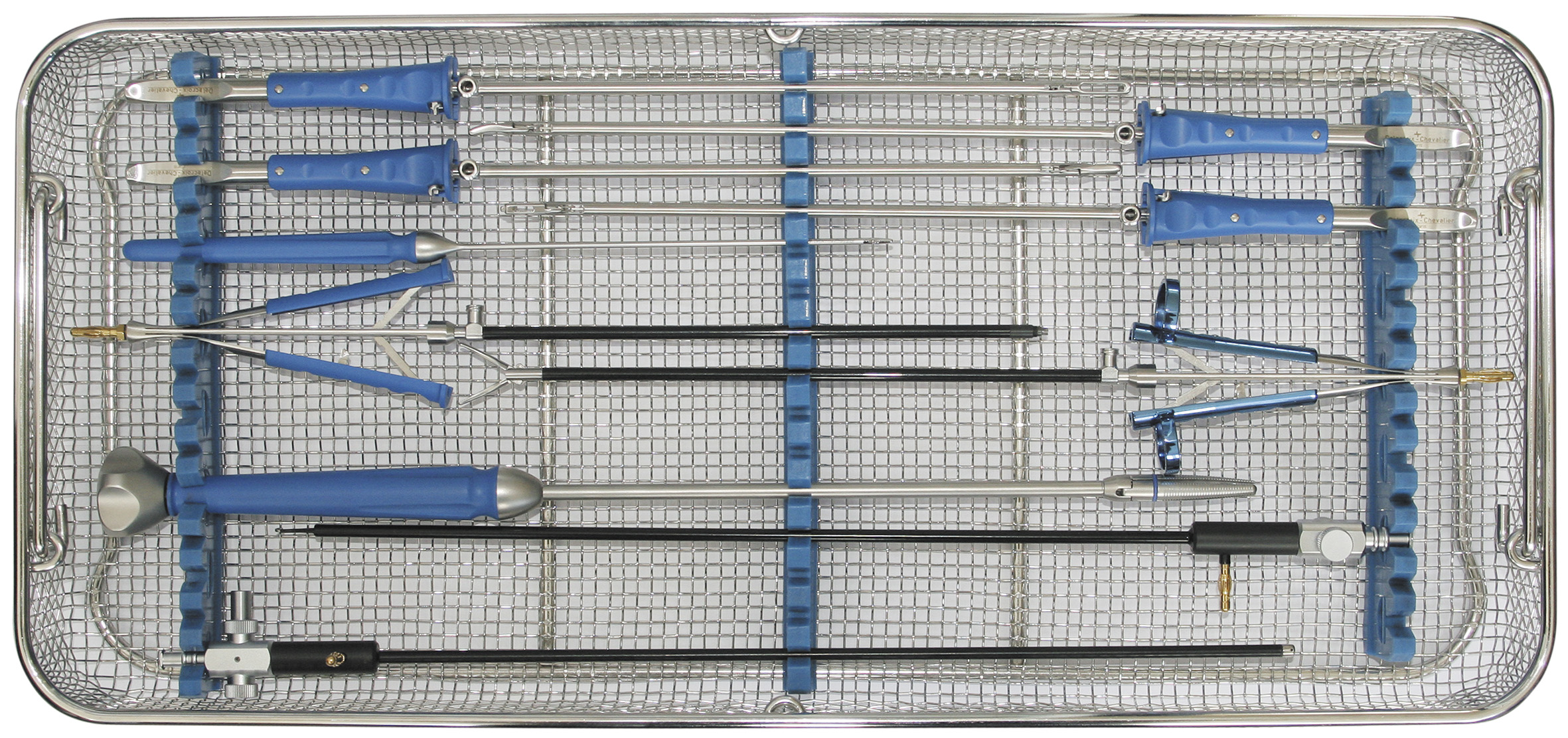 Cesto perfurado para esterilização para materiais cirúrgicos permanentes. Dimensões: Comprimento de 540mm, largura de 240mm e altura de 60mm. Autoclavável.