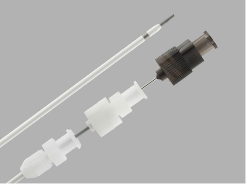 Conjunto de acesso percutâneo Neff com bainha introdutora hidrofílica, utilizado em procedimentos de radiologia intervencionista como drenagem biliar, drenagem de abcessos e nefrostomia percutânea, permitindo punção com agulha fina atraumática e a transição para um fio guia de trabalho de até 0,038 polegadas de diâmetro.