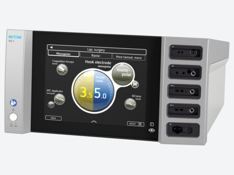 A unidade eletrocirúrgica ERBE VIO 3 estabelece um padrão inovador, que fornece excepcional suporte aos procedimentos cirúrgicos em praticamente todas as especialidades, inclusive a endoscopia, com os exclusivos modos endoCut Q e endoCut I.
