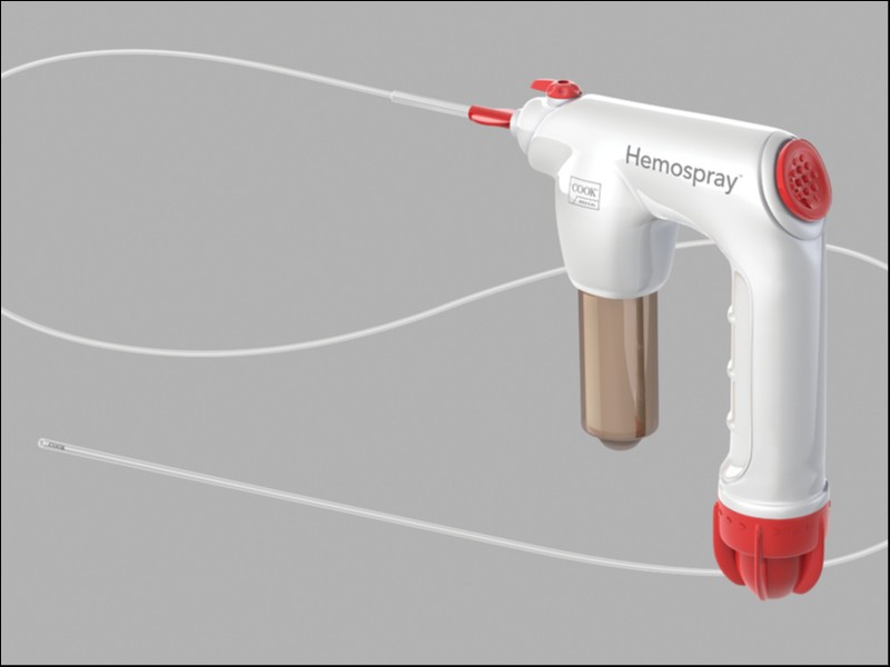 O Hemospray é um pó formado por uma mistura mineral patenteada e desenvolvida especificamente para a hemostasia endoscópica em hemorragia digestiva alta não varicosa. Não contém proteínas animais, humanas ou extratos botânicos e não possui alergênicos conhecidos. O Hemospray é uma modalidade não térmica, não traumática e sem contato, que não requer um direcionamento tão preciso como outros dispositivos endoscópicos. Quando o Hemospray entra em contato com um local com hemorragia , o pó absorve água formando uma barreira mecânica adesiva e coesiva sobre o local com a hemorragia.